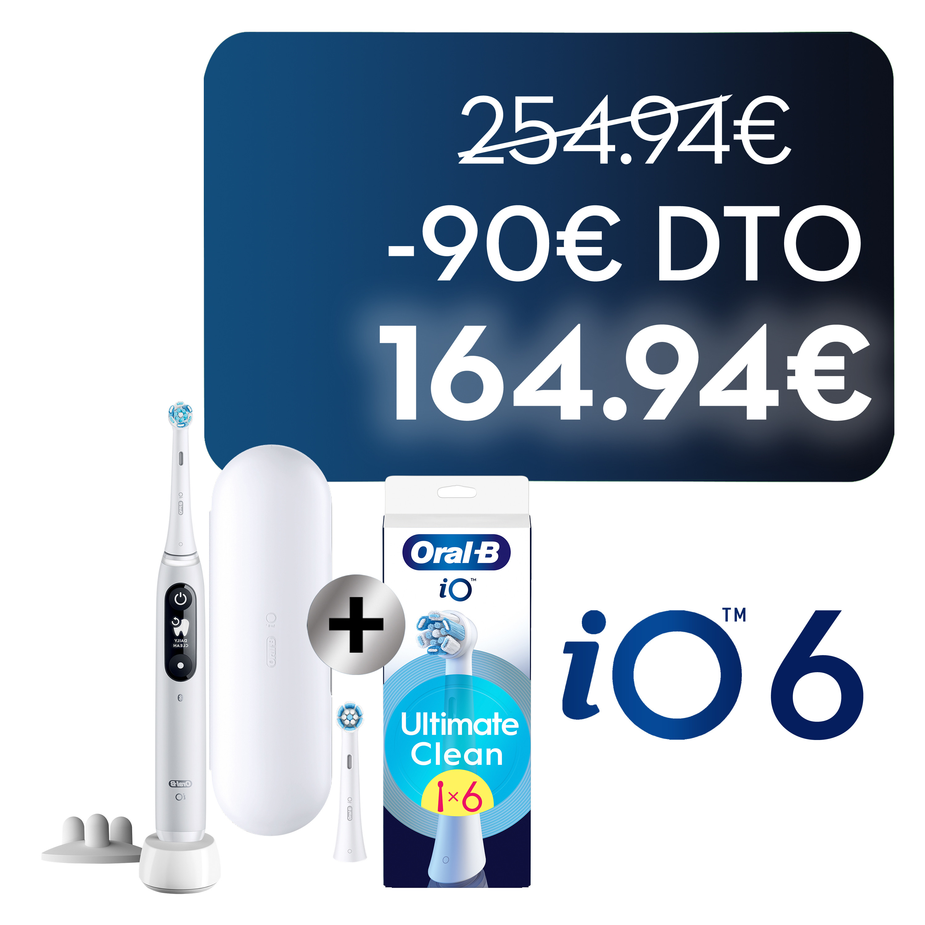 - Contenido: 1 mango iO 6 con 2 cabezales, 1 funda de viaje, 1 cargador y 1 portarrecambios